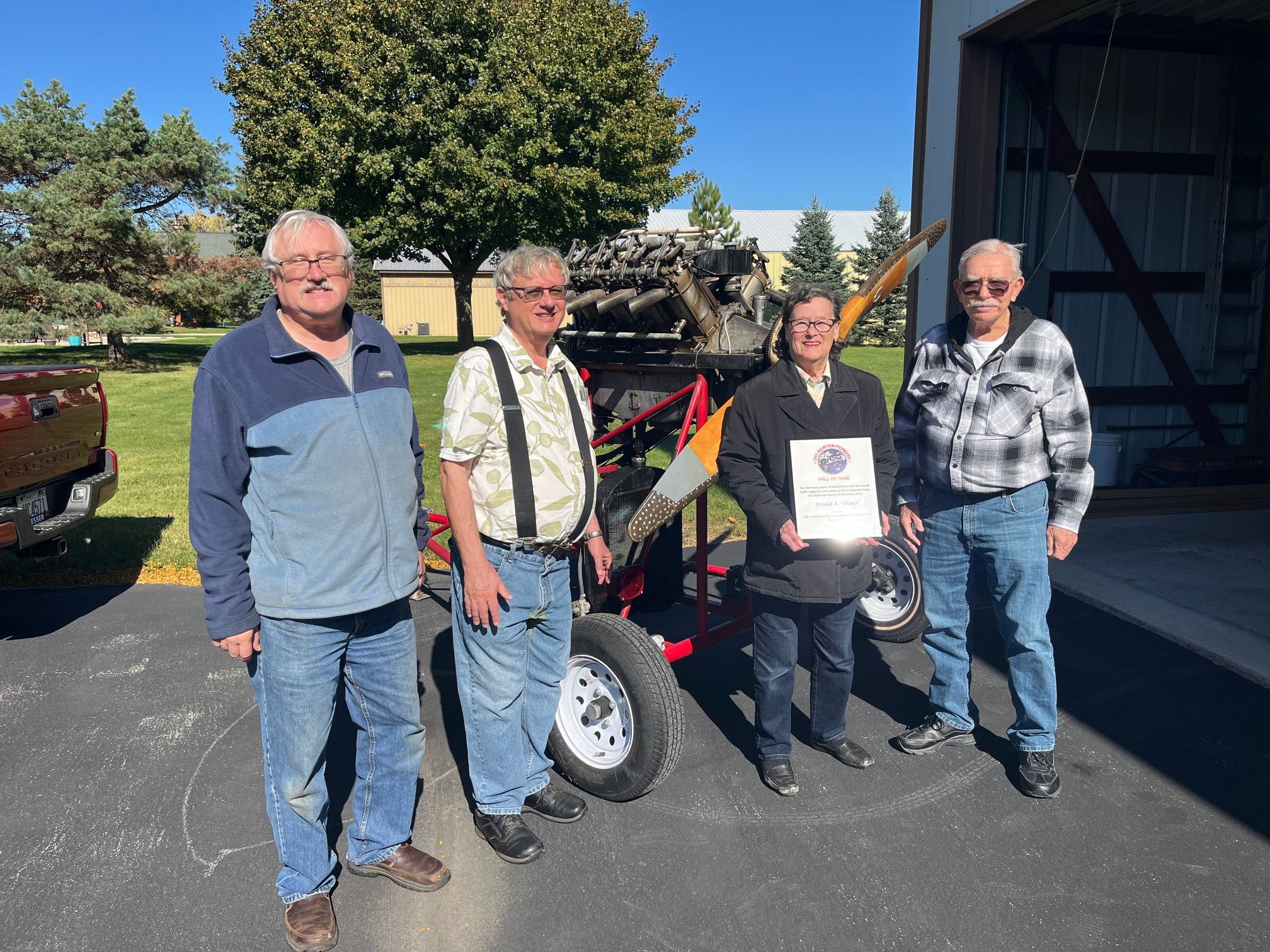 Left to right: Don’s sons Jeff and Rick, Don’s widow Jeanette, and Wisc. Wing President Dave Hedgecock.